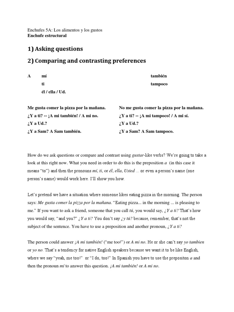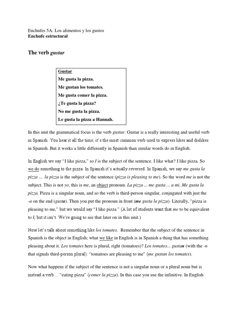 Enchufes Pdf 5a 07 Gustar Grammatical Number Verb